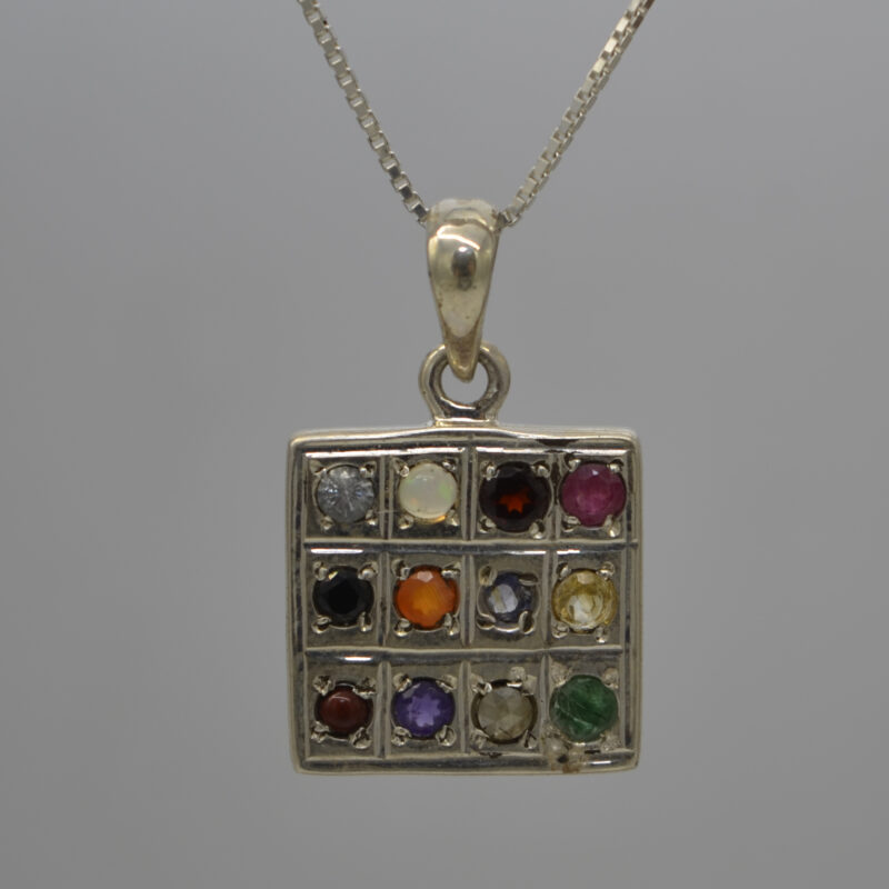 אבני החושן משובצות על פלטת כסף בצורת מגן דוד לפי הסדר הרשום בספר שמות.